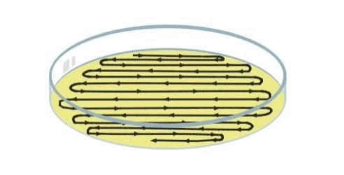 Thorough and precautious swabs for each culture were taken, as the negative control was simply the lid of the plate being lifted (not removed or uncovered to prevent exposure) and a removal of a sterilized cotton swab and appliance to the agar culture by dragging the sterile end across the nutrient agar in a zigzag pattern, then rotating the dish 90 degrees and repeating the same swab. The zigzag pattern was as portrayed below: